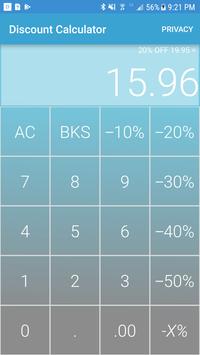 With the discount calculator, you can easily open the app and enter in the price of the item then simply press the percent off button that corresponds to the discount. You will instantly be shown the sale price of the item