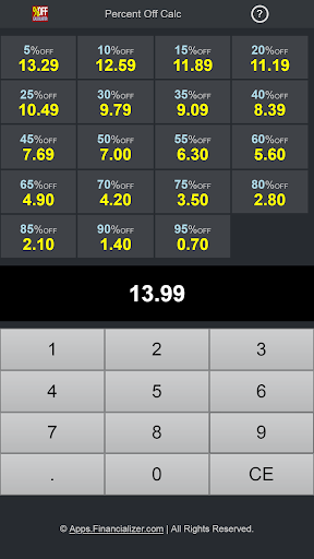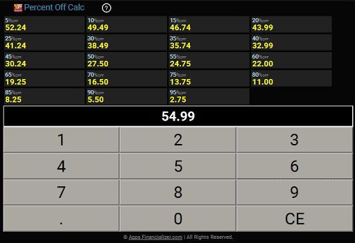 Just found this app and it's going to be quite useful in my work. Percentage off sales run frequently at my workplace and they don't always apply properly at POS. So this is a quick way to get an accurate price when a customer needs assistance! Have a feeling I'm going to like it a lot, and intend to submit a follow-up review after I've had some time to put it to use! App looks like a great idea!!