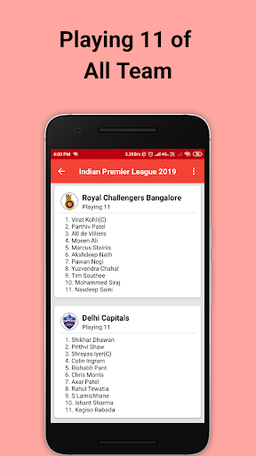 • Algorithm based smart best teams • App users can also suggest their Best 11, Playing 11 & Probable 11 team.