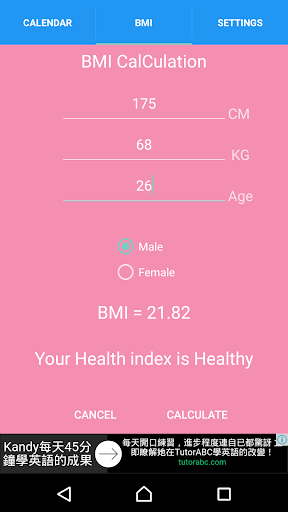 and you can choose male or female and input age, this BMI range