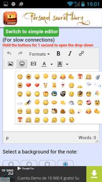which are animated, you can also add pictures and videos from a URL, ie can copy from your social networks, besides having all the basic options of a text editor, such as bold , underscores, special characters and symbols, font color and background, create tables ...