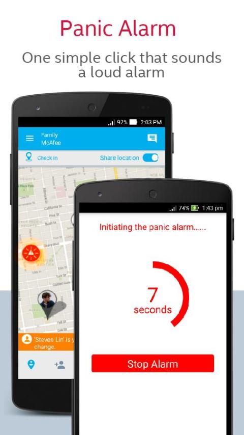 Avoid potentially unsafe situations with a panic alarm button that alerts others around you and automatically makes a Priority Call to your trusted contacts. They will get two urgent messages - one with your location details, and one with your Shadow Me message.
