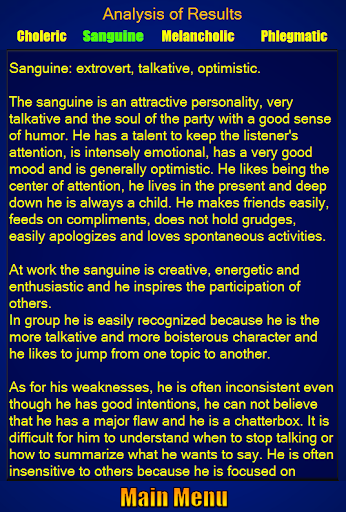 Choleric, Sanguine, Melancholic or Phlegmatic? Which of the four personalities do you belong to? Carry out the personality test to discover your temperament according to the theory of Hippocrates!