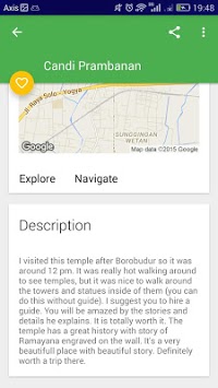 This application is really helpful give you information about various point of interests in Yogyakarta and the surrounding cities. Here, you'll be able to search a lot of information about cities tourist attraction (like beaches, temples, etc.), hotel, local culinary (food & drink), sport venue, nightlife and shopping places, public transportation and service (including police station and hospital), bank, and gas station.
