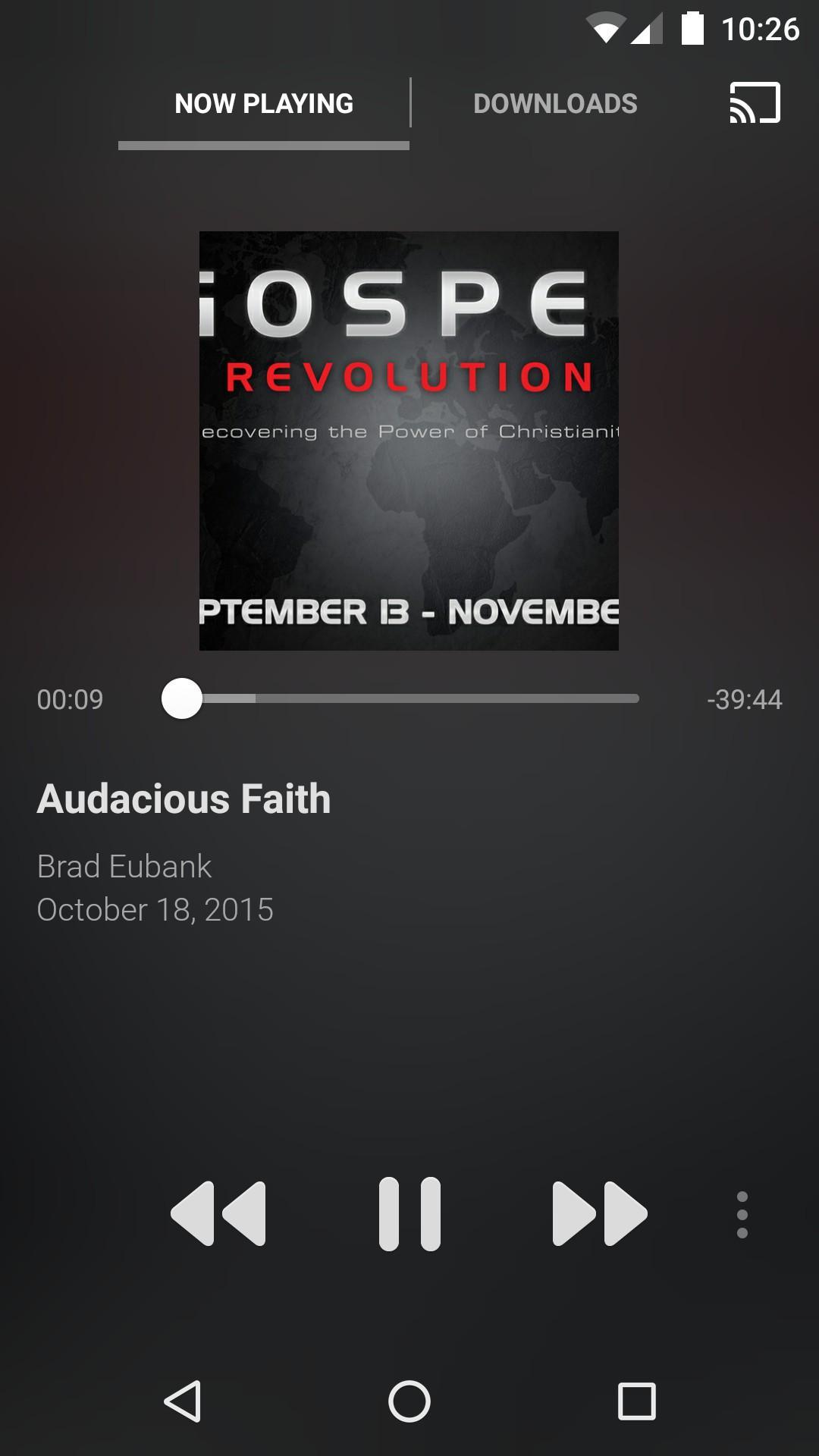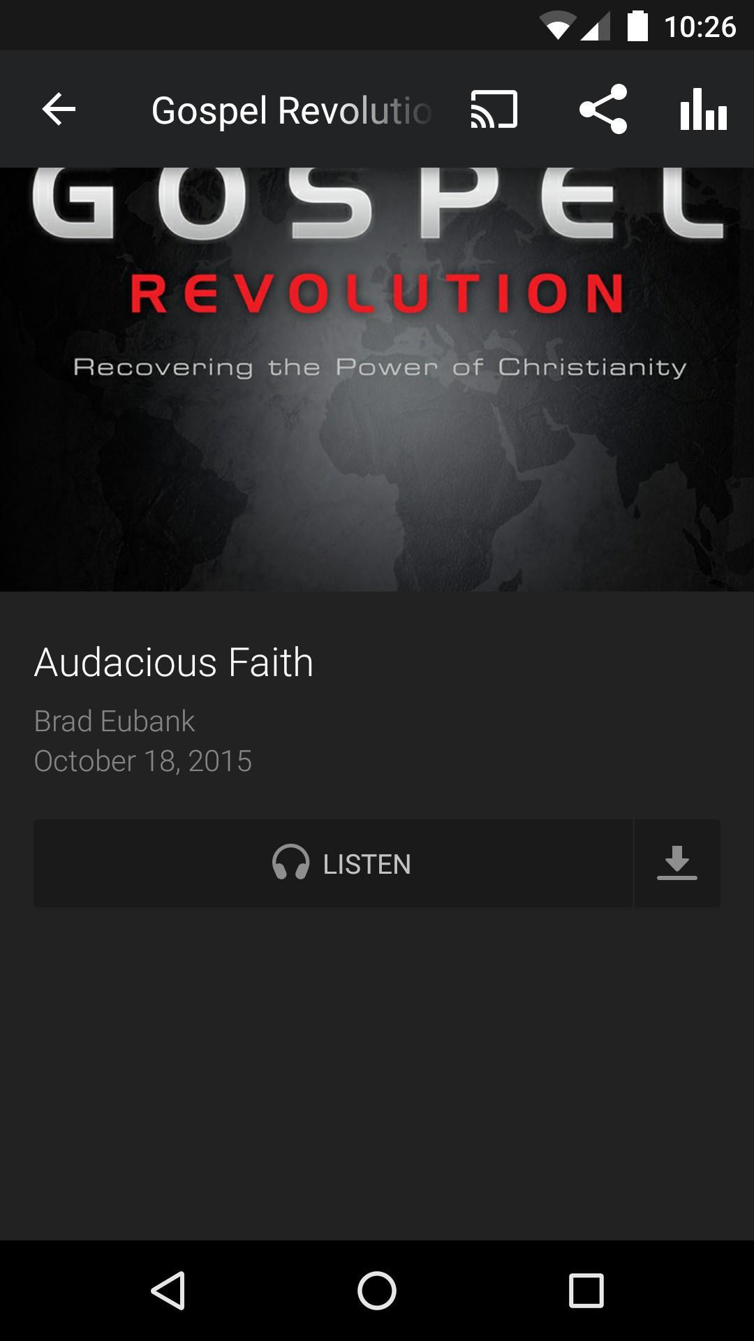 With this app, you'll be able to access audio and video, anywhere you go. Pastor Brad Eubank brings dynamic, biblically-based, gospel-centered messages each week that will inspire and strengthen you as a Christ-follower. We're thrilled to have the opportunity to spread and share the Good News with as many people as possible. After you've downloaded and learned from the content, you can easily share with others through Twitter, Facebook, and e-mail. In addition to sermons, you will have access to other content as well.