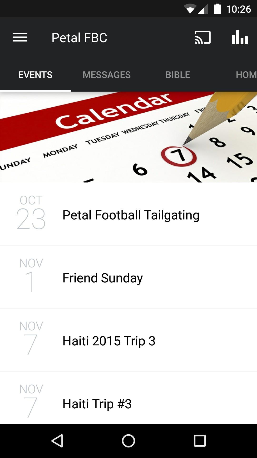 The Petal First Baptist app was developed with the Subsplash App Platform.