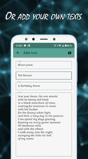 To make the search and adding texts easier, a library has been added to the application. There you will find the best verses, songs, fables and poems of great authors.