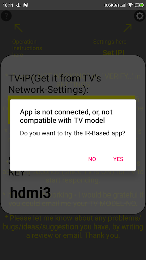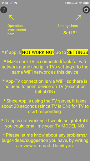 ** REMEMBER!!! you need to update app's settings(Top/Right corner of screen) with the TV's IP!