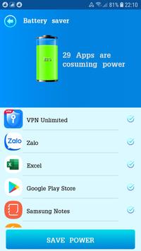 Disconnect battery draining applications to save energy with 1 touch; When your phone's battery is low, Phone Cleaner will prompt you to save battery power by cleaning applications.