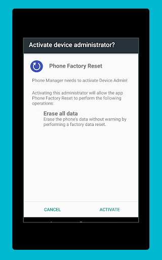 Almost all smart phones today need factory reset from time to time. With the danger that viruses posses to phones today, resetting them occasionally is mandatory. Phone Factory Reset app is well equipped to wipe out your data in the safest and fastest way possible. Before resetting, the app will ask the user if they are sure they want to erase all the data. The app easily resets the SD card along with the built in memory and will restore the phone to its factory settings. Your phone is literally just one click away from coming back to its factory settings with the help of Phone Factory Reset.