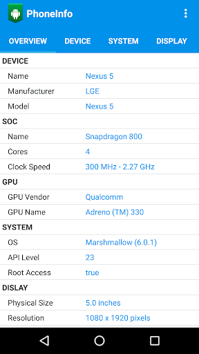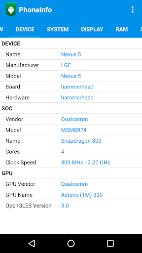 - SoC (System On Chip) name, architecture, clock speed for each core