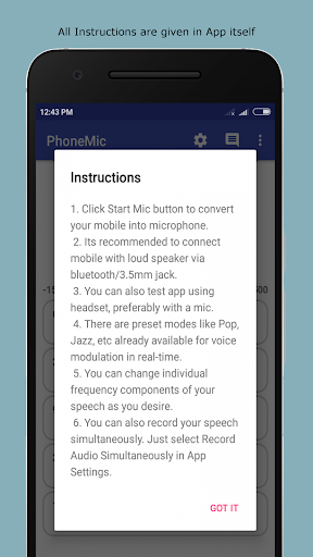 This app can be used in giving presentations, announcement in Railways, Airports, School, Colleges and any place where you have to use Mic/Microphone to speak to a large audience via loudspeaker.