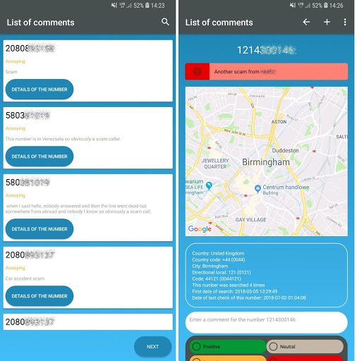Start with us searching and identifing mobile phone numbers, potential spam and scam calls, and simply know more about who called.