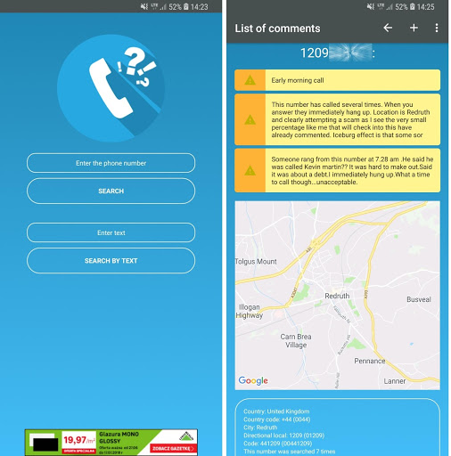 Who called me from UK? Got a call from an unknown number in United Kingdom? Use our free reverse phone directory android aplication to find out who called you, check phone number for question who called me? Check phone number in our database (phone book) on map. Check ratings and opinions. Easy checking phone mobile numbers for free.