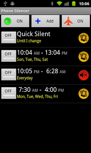 This app is great for students, so they can schedule when the phone automatically goes to silent mode before the school and back to normal mode after the school; it also great for people who have weekly meetings and need to turn the phone to silent mode during the meetings.