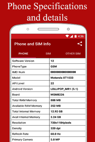 Phone and SIM info provides a lot of information about your mobile, SIM card and network.