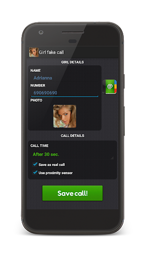 You decide when the hot girl will call to you. You decide how she looks and what's her name. You can customize call settings and choose the incoming fake caller details.