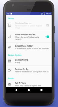 This application allows you to automatically and at any time to upload all your photos in an private album on Facebook and accessible only to you;