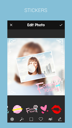 packed with photo filter effects to enhance photos, photo collage maker free style, Insta square size, blur background image to make blur wallpaper, add photo frame around photo, write text on photos, decorate photo with funny stickers, emojis for snap pic collage or texts and captions.
