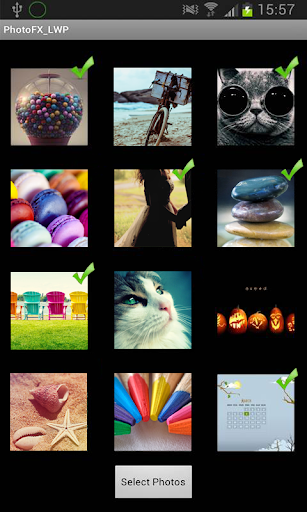 Customize your live wallpaper with your own photos. Take the customization to the next level. The photos gently land on the screen with various transitions creating a collage like effect. You can now look at your precious moments even on the lockscreen. Its shows the photos previously selected with cool effect on the screen. You can select any number of pics from the settings.