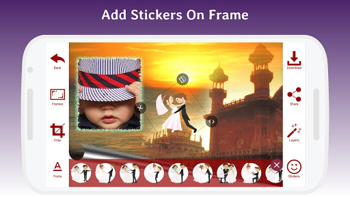 3) Give your frame personality with image : App has different stickers related different themes so you can increase look performance of your frame.