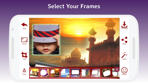 2) Select eye-catching frames : There are awesome collection frames are available in photo-editing page of this app. you can use any frame free and adjust your selected photo by using your two fingers.