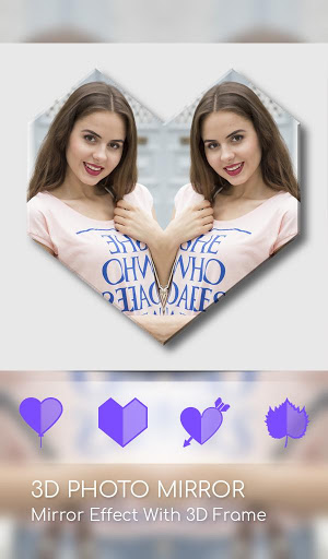 Quickly create the Mirror Photo and 3D mirror photo effect, 2D and 3D reflection effects allows you to make photo mirror effect. Create 3D photo mirror effects with using different types of 3D shapes and mirror reflection effects like heart, balloon, hexagon, rectangle, circle and much more.