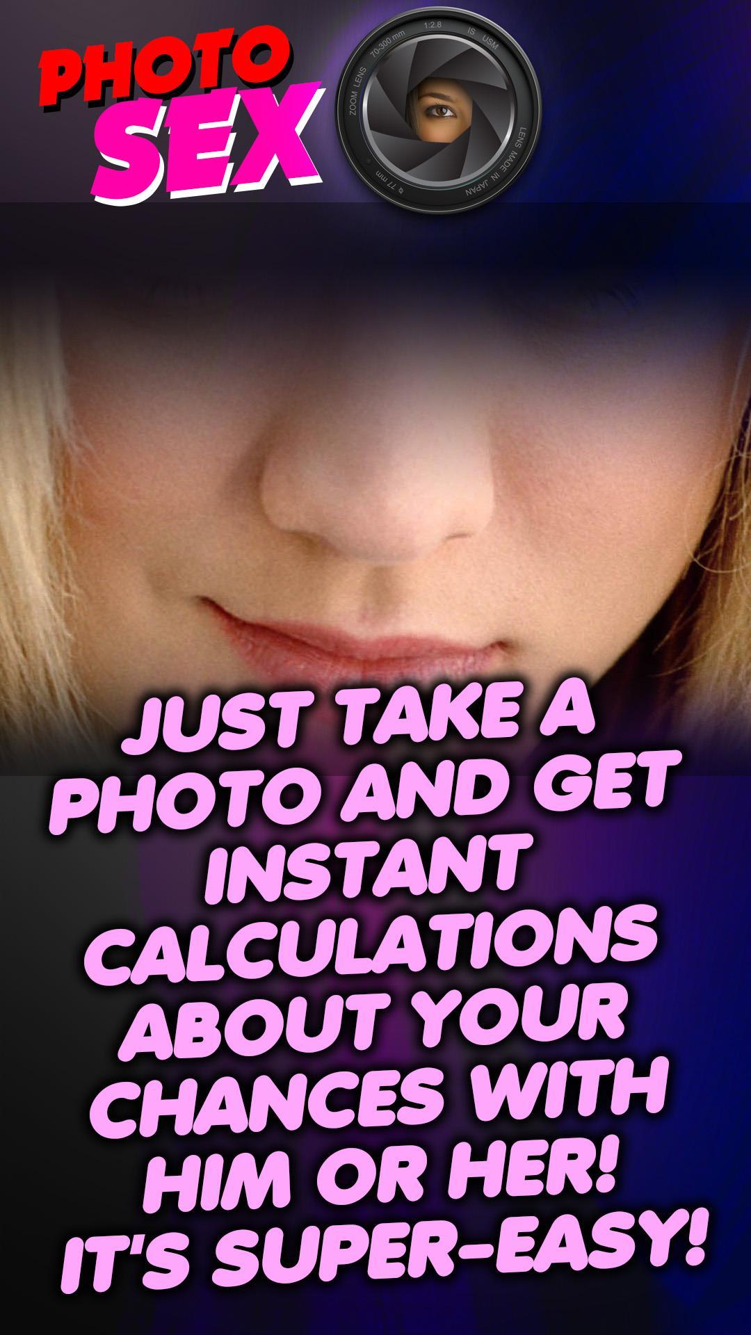 Photo Sex uses an algorithm that calculates several parameters and analyzes according to your photo. The algorithm calculates the moment and analyzes other variables such as lighting, color, contrast, shape and size, smiles ... Even analyze eye-looks and the brightness of the eyes to know if you'll have sex with other people.