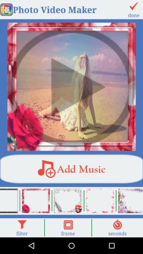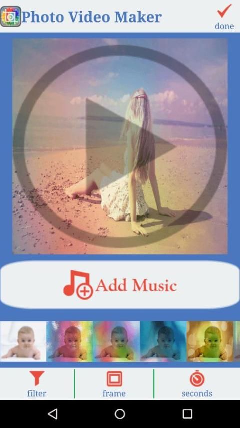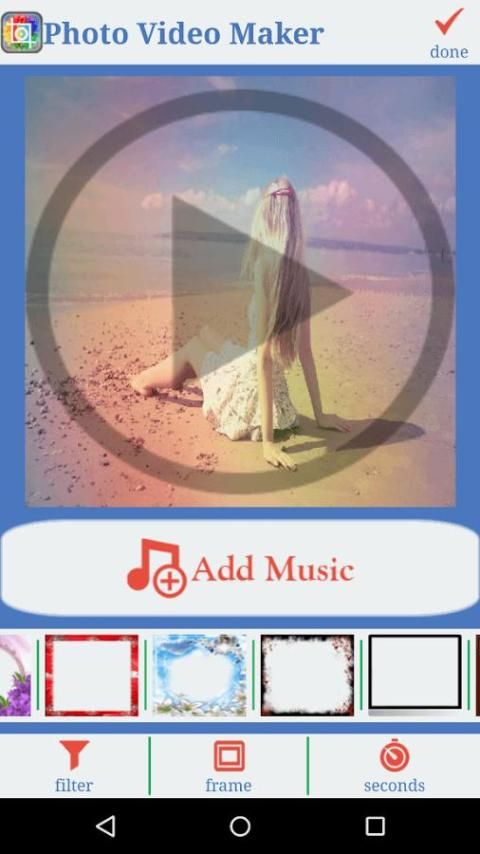 "Photo Slideshow with Music" app helps you to create Image Slideshow from your mobile in seconds, along with slide time, frames and filter effects.