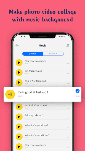 - For Video Collage select music track from selected videos or add other music from gallery for video collage making. Also can trim and edit video to select part of video for video collage maker.