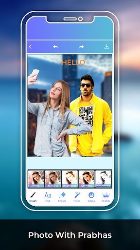 app with you can easily personalize your image with Prabhas. Application has amazing collection of HD frames with Prabhas with different photos. It is easy and simple to set your images with Prabhas and app also provide all amazing tools like