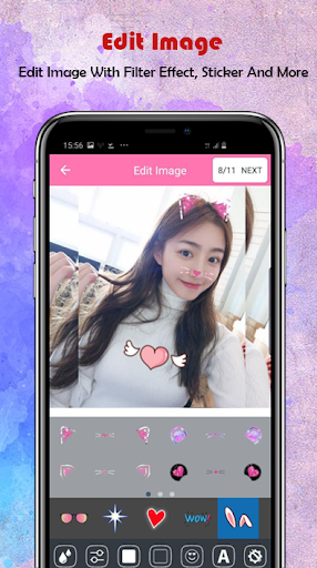 2.Edit your Each Image with effects, stickers, add text to photos, add frames to photos