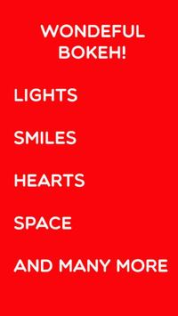· Choose between different form of bokeh (circle, flower, heart, star), light leaks or stream, and share your photo with your friends