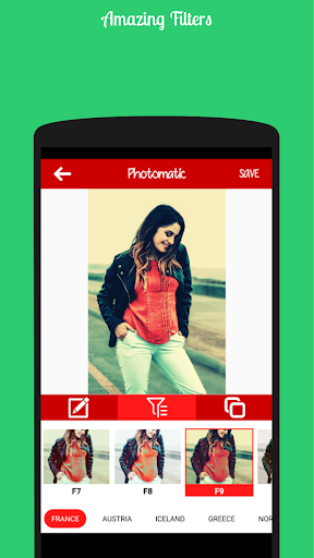 Photomatic has 50 amazing filters which will take your photo into next level. Filters are colorful, vibrant, black and white, aesthetic, vintage etc.