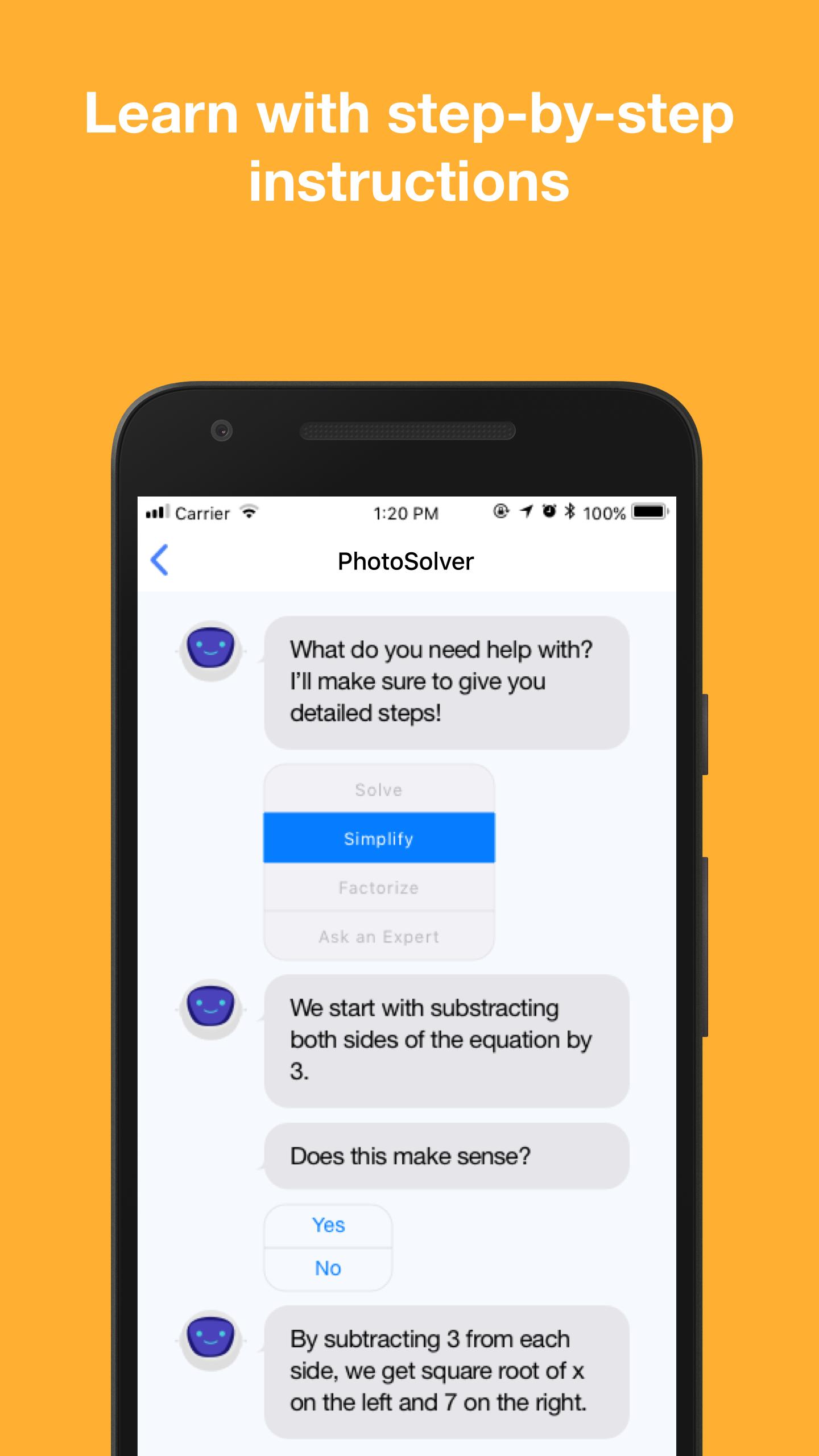 Math PhotoSolver is for ALL levels of Math problems not just simple ones. Need help with a problem? Checking if you have solved a problem correctly? Use our math PhotoSolver to snap a pic and instantly get the solution with the steps! And, our math PhotoSolver is 100% FREE! Forever.