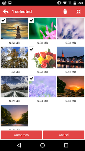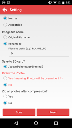 This app is a simple and handy tool for you to compress large size photos in your smart phone /tablet. It can compress photo less than 100KB in one step.