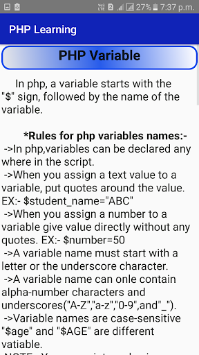 Php Learning in with Example Full description of different chapters of Php with examples All Function