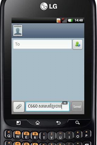 - Support **ONLY** LG Optimus Pro C660 has Khmer Unicode Installed (get your phone update at LG Cambodia Service Center)!