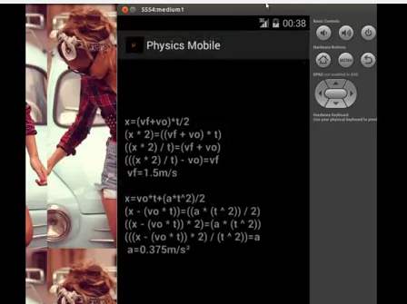 Solve physics problems . -you enter the variables -Physics Mobile will choose the equation - " " solve equations - " " shows solutions with respective units.