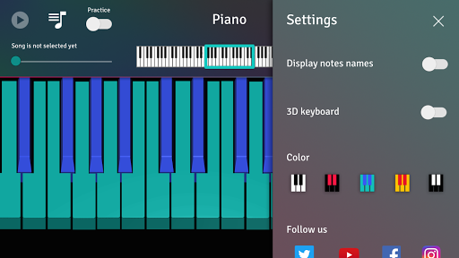 Realistic full-size keyboard, various colors, notes signatures, dozens of simplified tutorials, several sounds and much more will help you enjoy your piano-in-the-pocket.