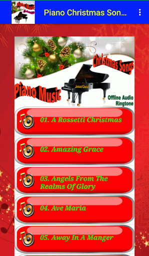 An app for best Christmas experience -- Piano Music of Christmas Songs. It consists of most popular Christmas Songs Piano Music such as Away In A Manger, Gesu Bambino, Joy To The World, We Wish You A Merry Christmas, etc. Install and enjoy the best of Christmas peace and magic right in your Android gadget. Enjoy the most popular and famous Christmas Carols on Piano Music. High quality offline audio with ringtone feature.