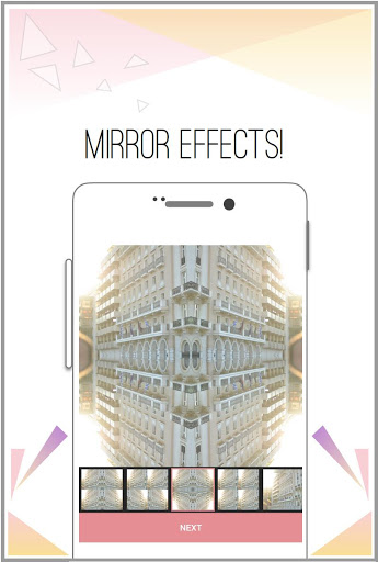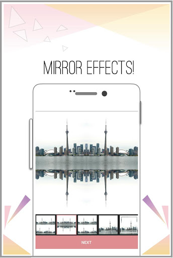 Snap a new photo with the camera to add a mirror effect to or choose a photo from your gallery, add one of the many cool mirror reflection effects, and share.