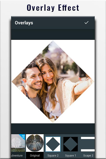 => Overlay Photo , Crop and resize , Splash, Sharpness and Blemish , Photo Frames