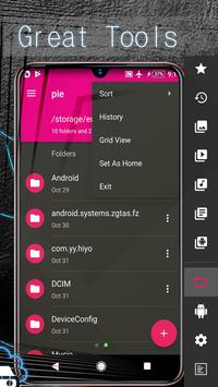 Pie File Manager With the bpiet file manager android 9.0 , you can efficiently and easily manage all your filpie whether they are stored in your device's memory, microSD card, local area network, and cloud storage accounts. What’s more, you can find how many filpie & apps you have on your device at a glance immediately after opening File manager.