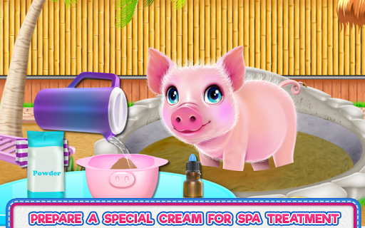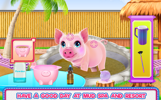 Time for spa! Your spa mud resort will be waiting guest, help this piggy to feel more relaxed and gain new abilities in this animal game. To accomplish that you will need all your attention, because this particular game will offer you an amazing opportunity to learn relaxation techniques besides the beauty tricks. Put all your talent together and try to find a way to give this little pig a pampering day and a refreshing outfit that would make her be more confident and cute. Clean her and make sure you use appropriate products for each part of his body. First, you will be washing her face then you'll be rubbing her body. Clean the dirt from her face then create a healthy natural face mask to remove the impurities. The mud is good for everything that is why your face mask will contain some. Then you have to dry her and moisturize her skin with some piggy oil. Next comes the designing part. When you are done, you just have to apply the blush, the eye shadow and of course the lipstick too. Move forward to the dressing up step to create a fashionable look for this happy and relaxed bee. Play with colors, change the way the wings appear, add a new pair of shoes, maybe you would like a flower headband and why not, dress her up with a beautiful dress. Be creative and keep playing until you are a professional caretaker and fashion designer for pigs all over the world.