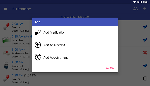 • Multiple user support. Add medications for yourself, family members, or others you care for