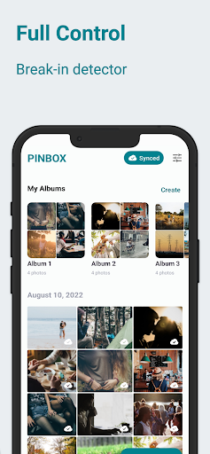 Auto backup & sync your encrypted vault contents to our private cloud service with unlimited space. Access from any device with Pinbox on it.