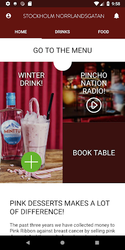 A tapas-generating app? Yes! At Pincho Nation's restaurants you do everything in the app; reserve tables, check the menu, order and pay. It's also in the app you join The Circus, the club for us that loves Pincho Nation! Here you collect bonus points that become free tapas and can also take advantage of news and other extra offers from both us and our friends. Welcome!