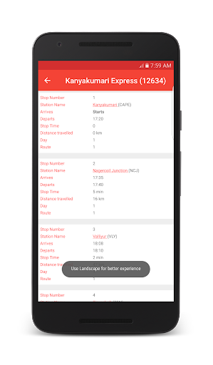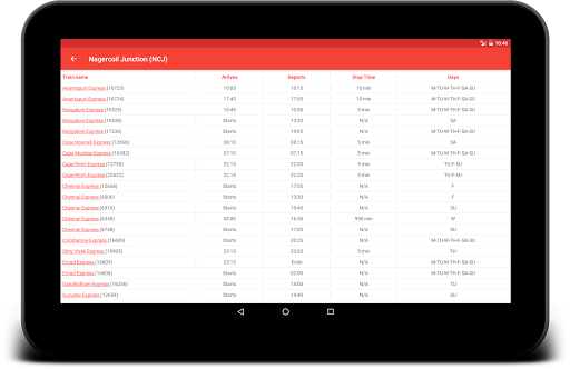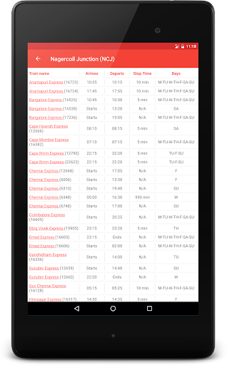 * Search details of all railway stations in India(You can see details like no.of trains passing via, Arrival and Departure time, Stop time, Available days, etc) .