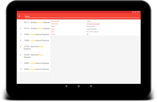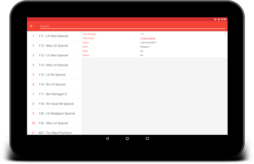 * Search details of all Trains in India(You can see details like Route and Schedule, Travel Time, Kilo meters travelled, Pantry, etc )